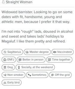 ‘Joyce’, heeft op haar profiel beschreven alleen interesse te hebben in nette mannen.