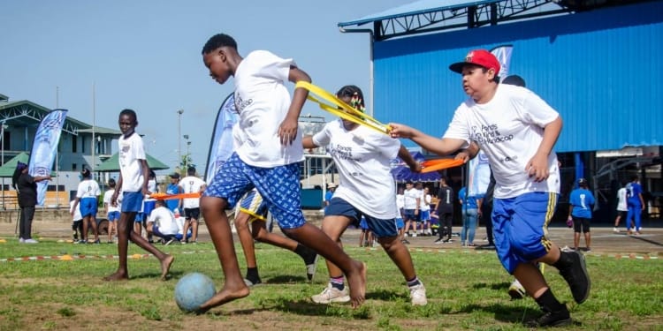 De kinderen van de drie scholen trotseerden de felle zon en het plezier was van hun gezichten af te lezen. “Ik heb erg genoten, maar het was te kort. Ik wil nog door spelen”, zegt Macherano Dens van de SO Jule Fernandes.