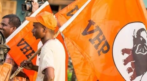 Een man met de VHP vlag in Munder. Foto Kishan Ramsukul 470x260 1