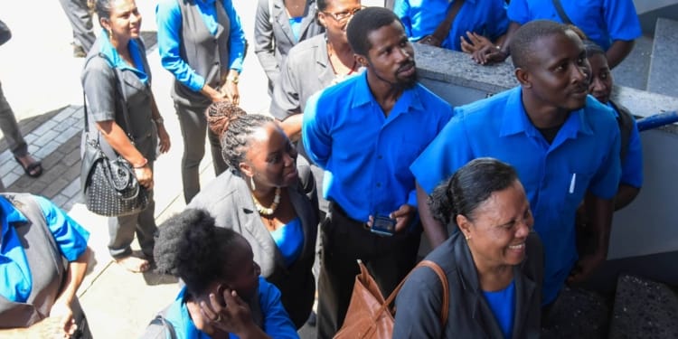 GFC NIEUWSREDACTIE- Met duidelijke blikken van opluchting verlieten de leden van de Bond van Personeel bij het Algemeen Bureau voor de Statistiek (BABS) het kabinet van de Surinaamse vicepresident (vp), Ronnie Brunswijk.