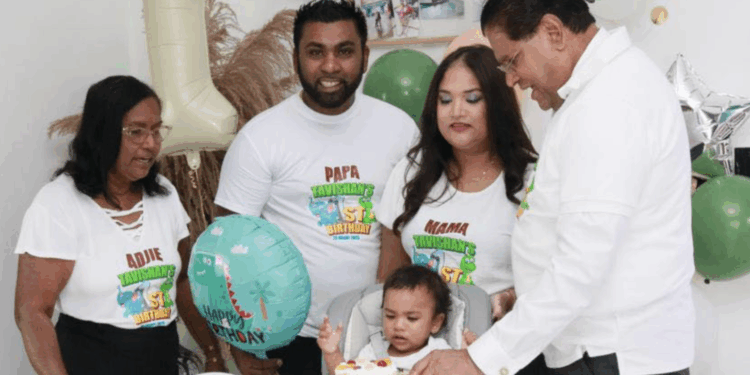 President Chandrikapersad Santokhi heeft vandaag, vrijdag 28 maart 2025, de eerste verjaardag van zijn kleinzoon Tavishan gevierd.