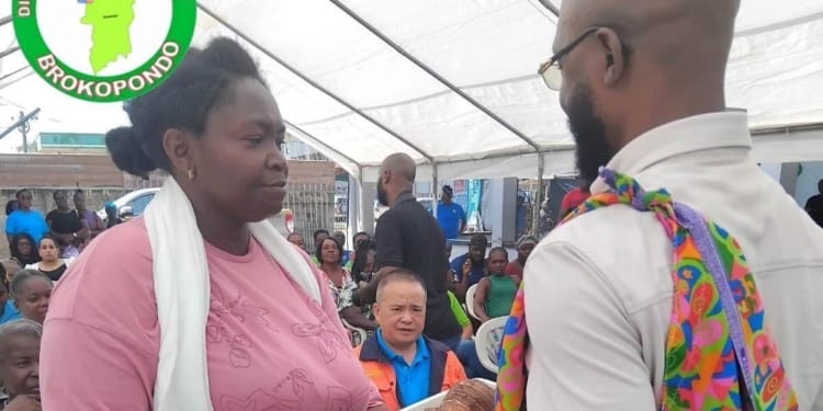 Tijdens de opening gaf Jerry Finisie, vertegenwoordiger van Rosebel Goldmines, een toelichting op de initiatieven waarmee het bedrijf de lokale gemeenschappen en de Medische Zending ondersteunt.