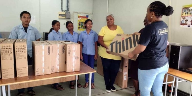 GFC NIEUWSREDACTIE- Staatsolie Maatschappij Suriname heeft vijftig persoonlijke computers gedoneerd aan vier VOJ-scholen in het district Saramacca.