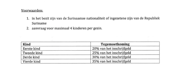 De regering Santokhi-Brunswijk heeft het besluit genomen om middels een tegemoetkoming verlichting te brengen in de kosten van het inschrijfgeld voor het schooljaar/collegejaar 2024/2025.