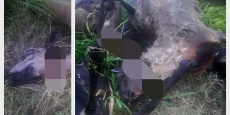 Na een zoektocht in de omgeving ontdekte hij zes schapen dood in een rijstareaal van een buurman. De keel van de schapen waren doorgesneden. De vier andere schapen waren niet te vinden en J.G. vermoedt dat deze zijn weggenomen.