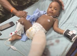 Hun kind werd in zijn been geraakt terwijl de moeder in het ziekenhuis de geest liet.