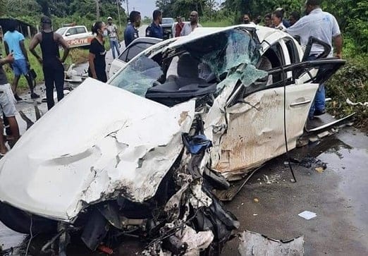 Op het wegdek werd de personenauto met de bestuurder R.W. die in gezelschap was van de mede-inzittenden R.N. en R.D. aangetroffen. Dit drietal was bij aankomst van de politie niet aanspreekbaar. Alle vijf personen werden voor medische hulp per ontboden ambulance afgevoerd naar de Spoedeisende Hulp van het Academisch Ziekenhuis van Paramaribo.
