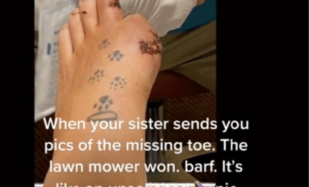 Haar broer deelde een foto op sociale media waarop de linkervoet van zijn onfortuinlijke zus te zien is. Daaruit blijkt dat haar grote teen is geamputeerd, schrijft The Sun.